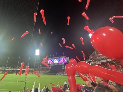 東の「指定席」から見るとこの景色。指定席を選ぶであろう遠征組に配慮したかな。最初は「なんで指定席が正面じゃないのかな?」と思ったけど。