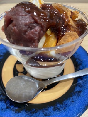 あんこが美味しそうだったのできなこわらび餅ソフトも追加、790円と250円、計1040円。歩いて徳山駅に。