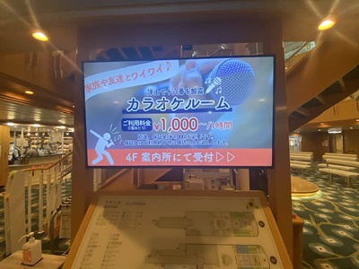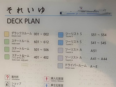 特に案内もなく(バーコードは発行済なので手続きは不要)3階の待合室に。23時7分に乗船予告アナウンス。