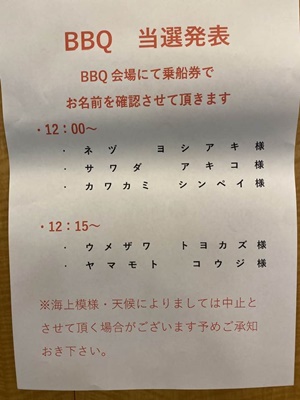 あ、そうだった。バーベキューの当選発表出てる頃だ、と4階に見に行くと見事当選。何人応募したかはわからんが。そして雨だし。