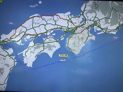 ネットは相変わらずつながらないが、スピードメーターは反応あって時速50kmと出た。下道走るような速度で日本列島の南を進んでいるんだな。