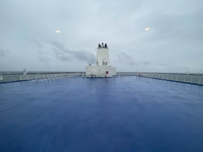 19時50分、Xも取得。20時になったので荷造り完了、部屋からだとアナウンスが聞きづらいので荷物持ってロビーに。YouTubeも見れるようになったが、途中で停まる。20時で船内の各業務は終了。到着25分前でいろんなアプリが動き始めた。