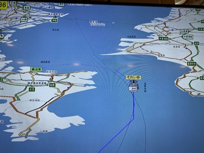 19時前にビール飲み終わるがさすがにもう買わない。昨日買った柿ピーも食べ終わったし。現在位置は三浦半島沖。もうすぐ東京湾に突入。
