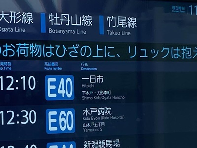 眠いので寝て起きたら上毛高原駅の手前。時刻は10時。今日は朝酒の感じではない。10時41分新潟着。秋山さんと同じ新幹線だったようだ。