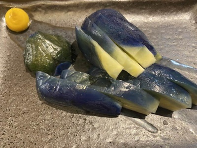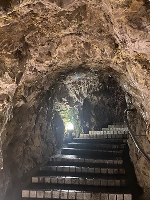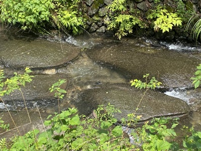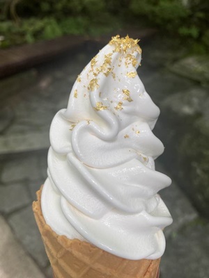 坑道早く見終わったのと、途中にも明治の遺構があったので歩いて奉行所まで行くことに。ランチ食えるところがなかったので1dayパスで50円引きの金箔ソフトと笹団子購入、山道を下る。
