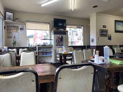 時刻は14時。さて時間が余ったぞ。早く小木に行こうかと思ったが、次のバスは乗り換え地点の佐和田BSまで行ってくれない「きらりうむ佐渡」止まり。じゃあとりあえず相川まで行ってランチ食べれるとこ探すか、と検索すると「パーラーつるや」が出た。しかも「営業時間中」。バスと徒歩で行けるところにあったのか!これは予定外の大収穫。14時13分のバスに乗って相川で降り、次のバスの時刻を確認してから歩き出し、「←商店街」の方向に曲がったらすぐあった。やってる。これはまさに「ワンチャン」だなあ。