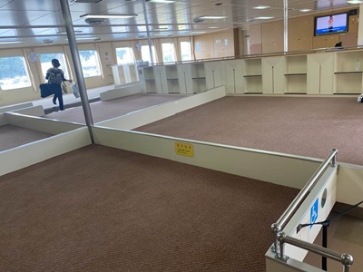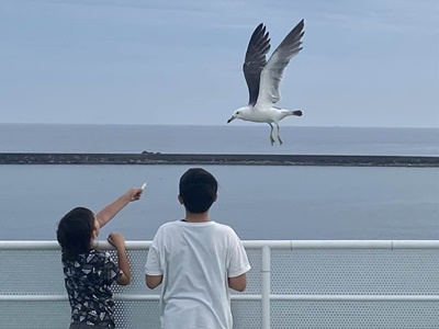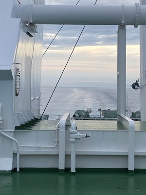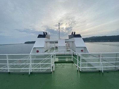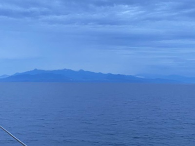 出航して約5分で外海に出て高速航海(80km/h)開始。30分でインターネットにつながらなくなる。となると退屈なので寝てしまう。天気は良くなった。よかった。