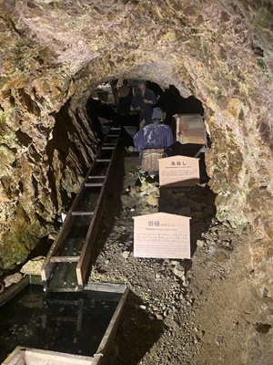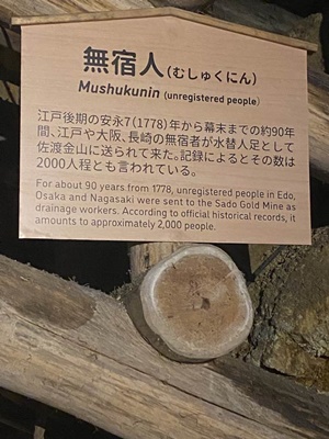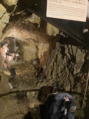 12時17分佐渡金山バス停到着。早速1500円払って江戸時代と明治時代の両方の坑道を見る。江戸時代の坑道(宗太夫坑)は天井が丸太。落盤はあまりなかったというが。
