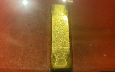 金の精錬に使われた鉛板。平成7年の発掘調査で見つかったそうだ。