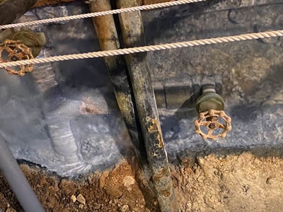 リアルな人形が当時の様子を再現。これは水抜きポンプ。