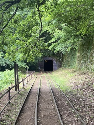 トンネルへと続く線路。動かすサービスはやってないのかな。