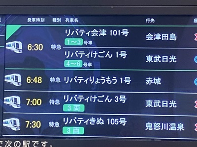 浅草からは6時30分発の東武特急リバティ会津101号で会津田島まで。