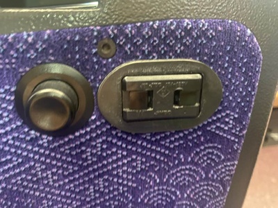座席にコンセント。これはありがたい。この東武500系は2017年の導入なのでこういう設備もついている。