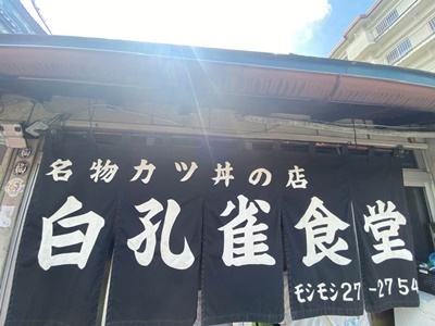 11時15分に白孔雀食堂到着。店頭には今日の興行のポスター。どうせ食べるなら興行支援してるとこがいいよね。