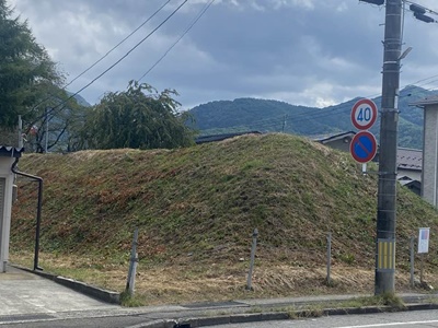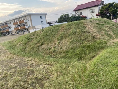 体育館脇にも土塁。