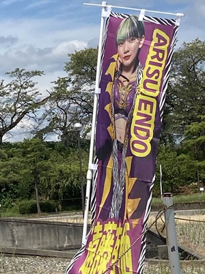 13時21分に開場待機列に並ぶ。30分過ぎ開場。よっぴのポートレートと真弥のTシャツ買うが着替える場所がない。まだ歩くからいいか。試合は14時半開始。有栖の入場時だけ紙テープあり。この「愛され具合」を見に来た。