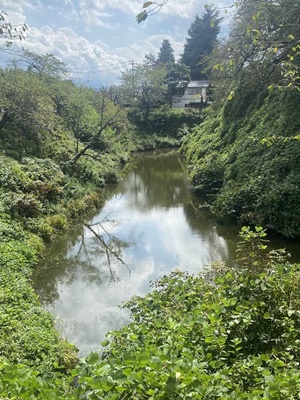 天気は予報に反して晴れになったが、その分暑い。十字路がずれているのが城下町っぽい。