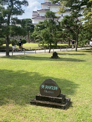 奥御殿跡。あまりの暑さに屋台で「冷凍みかんジュース」購入。200円。これ体の内側から冷やすのに良い。