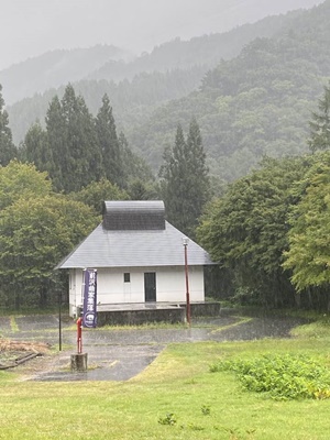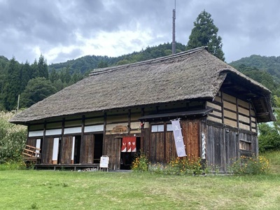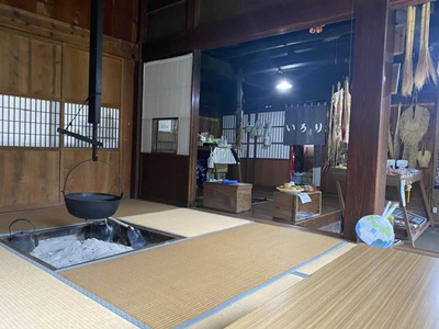 雨が降り出したので交流館でもある古民家カフェ「いろり」に。これも元は集落の中の民家。