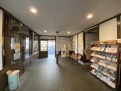 温泉旅館の入り口みたいな湯野上温泉駅改札。