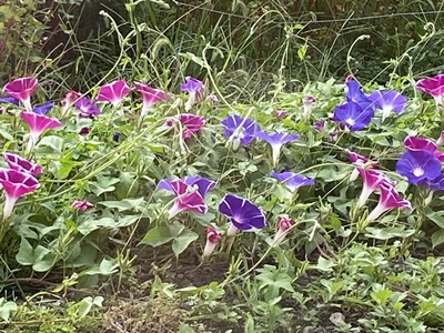 ホームに低く這った朝顔。これはこれできれい。
