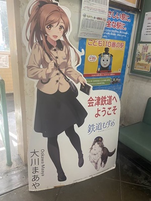 鉄道むすめは大川まあや。この駅だけではなく会津鉄道全体みたい。名前の由来は「大川ダム公園駅」と「あまや駅」から、だそうだ。