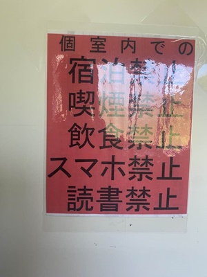 2個しか個室ないのでスマホ禁止・読書禁止はわかるが、宿泊しようとする奴いるのか?尾瀬に近いとはいえ、早朝からバスがあるわけじゃないしなあ。