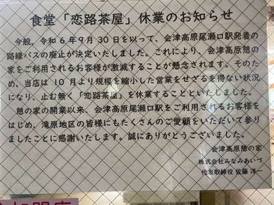 そして「憩の家」のレストランも休業に。