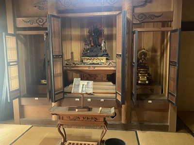 「ざしき」に南会津町の指定文化財「不動明王立像と二童子立像」。