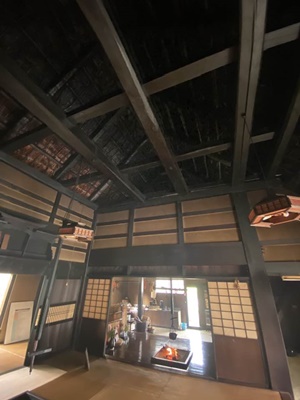 二階は白川とかと同じ養蚕の場。合掌造りほど角度はないが同じ発想。