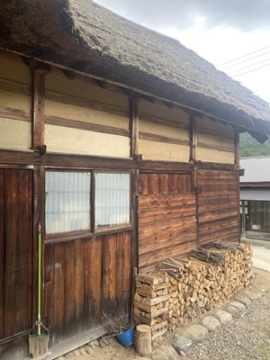 突出部。薪が置いてあるのは中に風呂があるから。