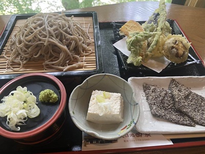 冷奴と「はっとう」がついた天ざるセット。1750円。
