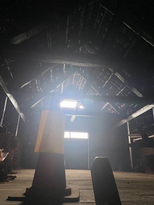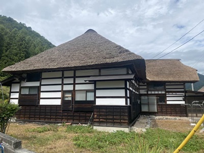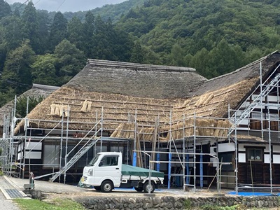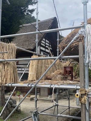 集落に戻ると、ちょうど茅の葺き替えをしてる家があった。