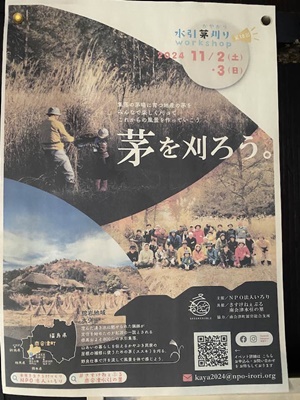 茅なんてまだあるのかなあ?職人さんまだいるのかなあ?と思ってたが、資料館に「茅を刈ろう」というイベントのポスターが貼ってあった。資料館の人に聞くと、昔は住民が自らやってたけど今は職人さんに頼んでるんだそうだ。