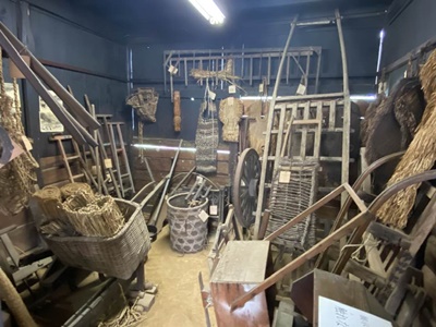 資料館に戻る。いろんな農具。