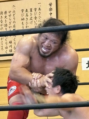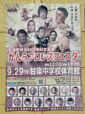 今回は「かんらプロレスフェスタ」と銘打ちゲスト参戦選手も何人か。とはいえそんな客をいっぱい呼べる選手でもないが。山本裕次郎久しぶりに見た。