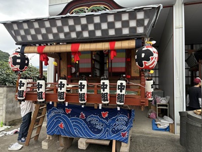 祭囃子が聞こえるので行ってみたら山車が準備中。小幡八幡神社の祭礼かな。長崎くんち見たいなー。