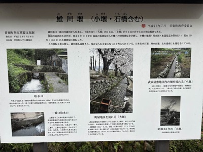 雄川堰の説明板。これ見てようやく雄川堰が雄川から引いた城下町のための水路と知る。