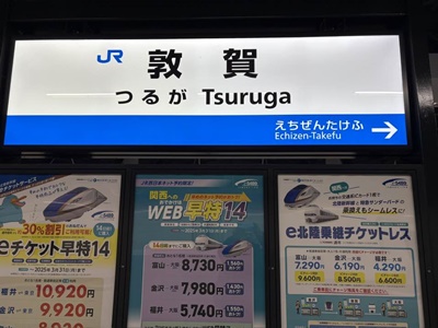 17時27分敦賀着。敦賀に降り立ったのは20年ぶり(サイコロ3ロケ地巡り)。次に乗る北陸新幹線は18時36分発。1時間か。店のある西口までは結構距離ある。