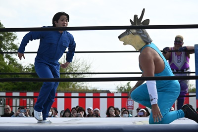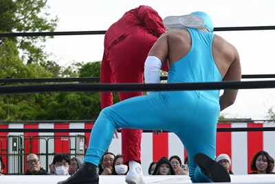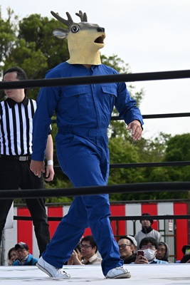 先発はスーパー鰻マスクと高鹿(左写真)。