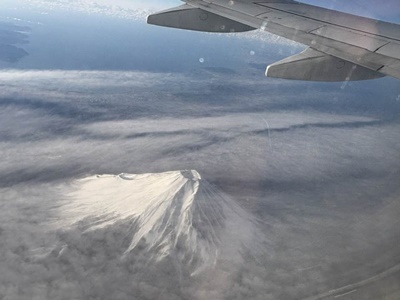 気づくと富士山さん上空。まさに「頭を雲の上に出し」だな。