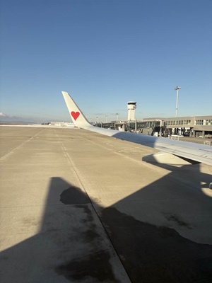 8時58分予定より早く着陸、キャリーもすぐ出てきてポートライナーの駅に。
