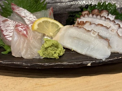 まずはたこと鯛の刺身。