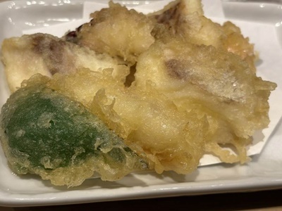 たことタイの天ぷら。あととろ鉄火。寿司屋だからね。而今、獺祭うまい。