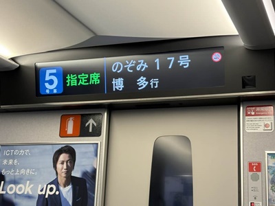 8時30分発博多行きのぞみ17号は満員。また電源ケーブル忘れてる。