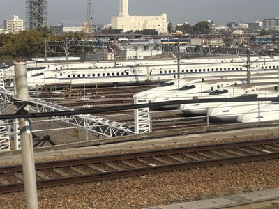 寝て起きたら鳥飼新幹線車両基地、あと5分。11時ちょうど新大阪着。