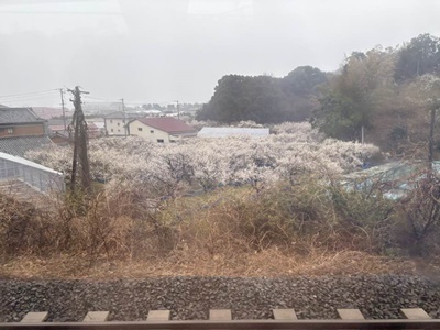 帰りの席は山沿い。ミカン畑。