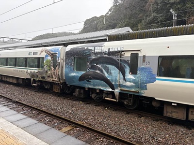 時刻は14時半、雨も上がったしあと1時間半何見ようかと思ってたらJALからメール。濃霧のため羽田発南紀白浜行きが着陸できない場合、南紀白浜発の最終便は欠航のおそれ、と。天気良くなりかけだけど、迷ってたら代替手段取れなくなるのでアドベン出てバス停に。白浜駅行きのバスは14時55分に出たばっかり。次は15時26分。それだと特急が1本遅くなる。まだ帰れるけど。仕方がないのでタクシー乗り場に。しかし1台もいない。電話しても「入ってくるの待たれたほうが早いですよ」と言われる始末。言われた通りに待つと数分で電話したとこでないタクシー入って来た。助かった。白浜駅まで1540円。航空券払い戻して現金で東京までの切符買う。19210円。3000円くらいの赤字だな。しゃあない。15時26分発くろしお26号はノーマルくろしお。