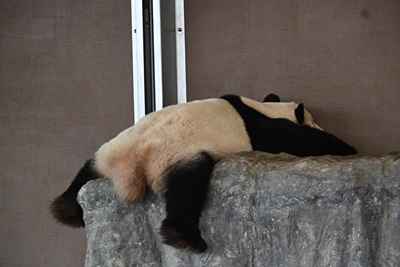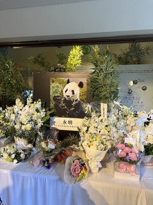 しかし雨。まずは室内モノ見るしかないだろうとパンダのブリーディングセンターに。1月に中国で亡くなった「ビッグダディ」永明の献花台。中で花買えるかと思ったらそんなことはなく献花できず。駅にも花売ってなかったしなあ。