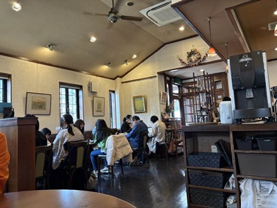 5時台に目が覚めいつものポイ活。今日は外でモーニング食べるので東横INNの朝食はパス。8時半にチェックアウトしてGoogleマップの評価が高い西口の「茶房万葉人」に。駐車場には車が多数停まっている。人気店なんだな。